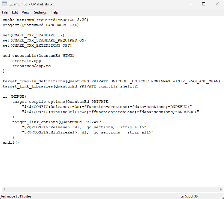 QuantumEd is a rudimentary text editor for Windows. Think of classic DOS Edit or Windows Notepad. QuantumEd adds only a couple of tidy features to help with every day tasks such as tabulator auto indent (great for some quick notes!) and basic hex editor. Some features may be added later on, but we aim to keep the editor simple, small and fast.